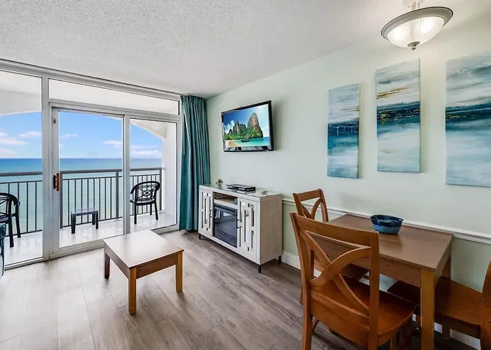 The 56 m² New Penthouse! Oceanfront, Heated Pools, Top Floor Myrtle Beach apartment is located nearly a 25-minute walk from the miniature Dragon's Lair Fantasy Golf and offers Wi-Fi for either business or leisure. Welcoming guests with a hot tub, this beachfront apartment lies in proximity to the Captain Hooks Adventure Golf.